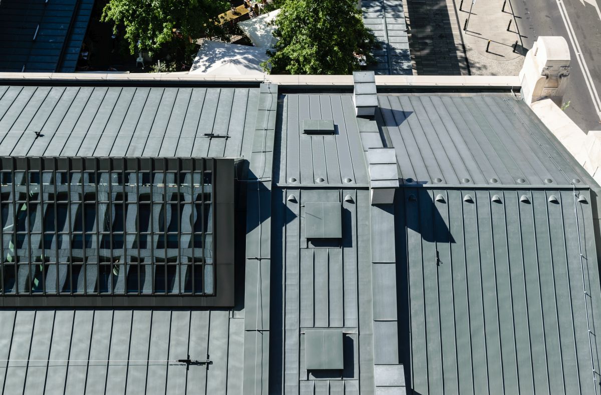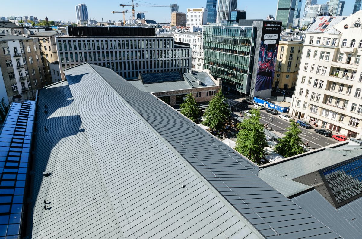 Griffin Real Estate und JEMS Architekci sind für die Wiedergeburt der Hala Koszyki verantwortlich. Zu den wichtigsten Elementen des Projekts gehörten die Schaffung eines gemischt genutzten Raums – Gastronomie, Büros und Kultur –, die Erhaltung der ursprünglichen, historischen Portale und Teile der Fassade sowie die Neudeckung des Daches mit RHEINZINK-prePATINA schiefergrau in Doppelstehfalztechnik.